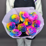 Лента атласная - 1 шт. Радужная роза - 9 шт. Дизайнерская упаковка - 1 шт.