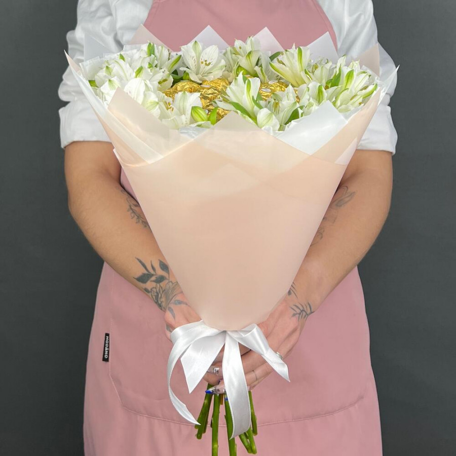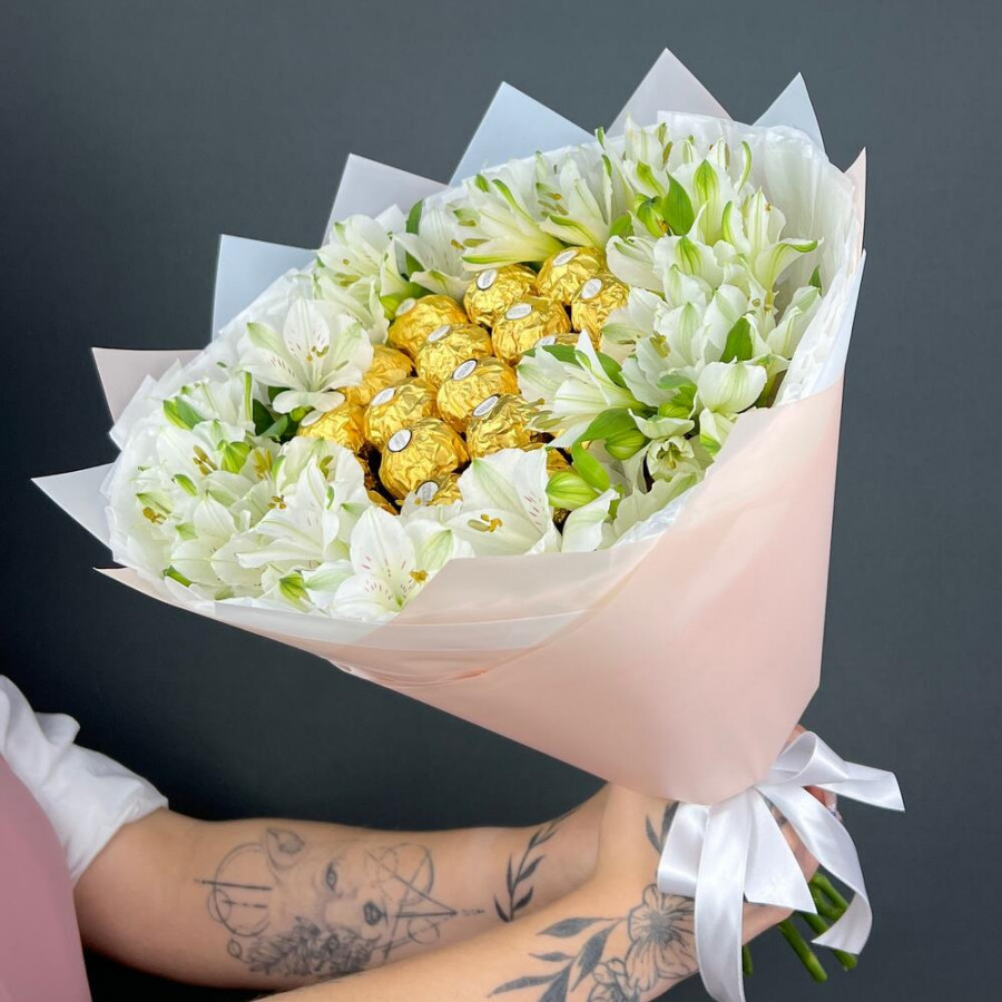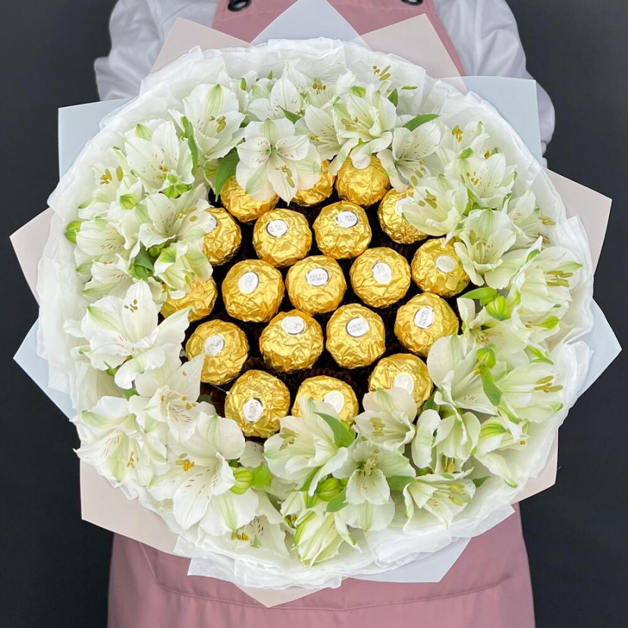 Букет из конфет Ferrero Rocher и и альстромерии в Обнинске