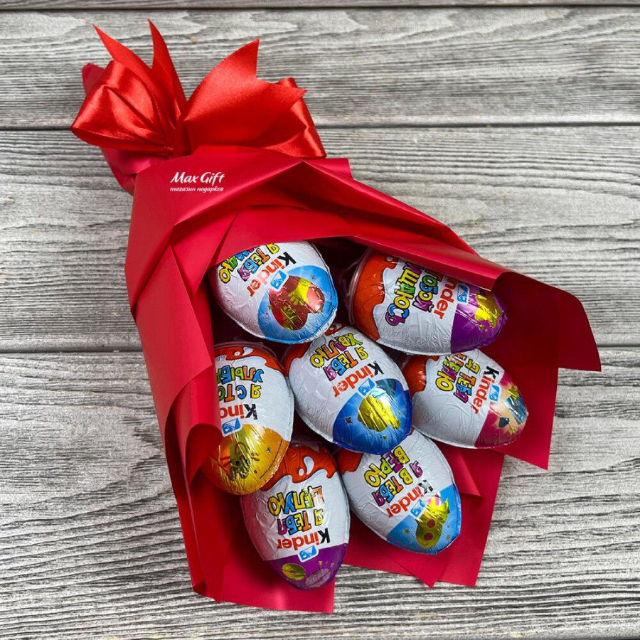 Атласная лента - 1 шт. Kinder сюрприз - 7 шт. упаковочная пленка - 1 шт.