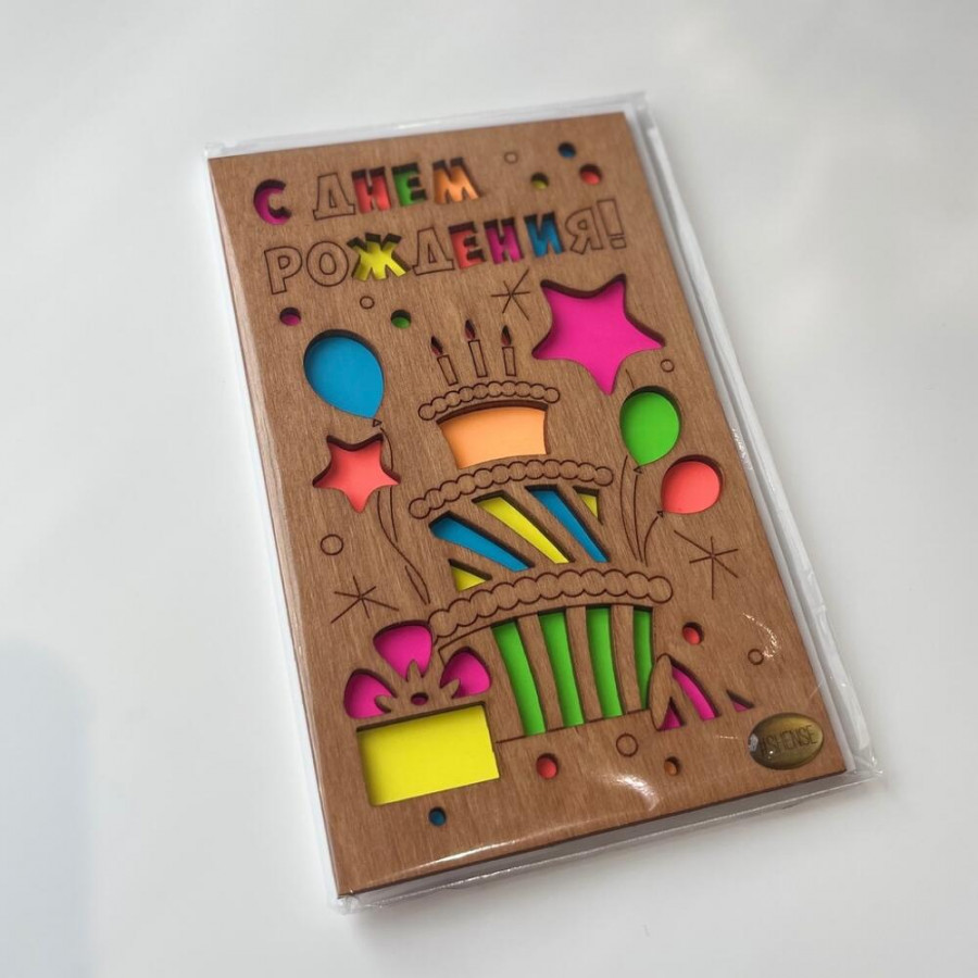 Открытка деревянная «С Днем Рождения» в Обнинске